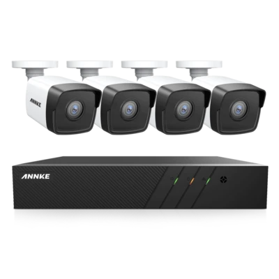 Vier solide bullet IP camera’s, glashelder 5MP beeld, audio-opname en een geavanceerde NVR. Het ANNKE ACS-8 N48-I51DL-4 5MP 8CH PoE Camerasysteem heeft alles in huis voor een veilig kantoor of thuis. De toegepaste PoE techniek staat garant voor een stabiele en eenvoudige verbinding. Verbindt de camera’s met de meegeleverde Ethernetkabels van 18 meter met de NVR (recorder), en de NVR met de meegeleverde korte Ethernetkabel met je router. Zowel de stroom- als de internetverbinding verkrijgen de camera’s dan vervolgens door die enkele netwerkkabel. Mis geen enkel detail: ontvang meldingen en volg de beelden 24/7 op je smartphone, tablet of op je PC. De NVR is daarbij voorzien van een harde schijf van 2TB, genoeg voor wekenlang opnemen. En wil je uitbreiden? Geen probleem, aan de NVR kunnen nog 4 extra camera’s worden toegevoegd.
